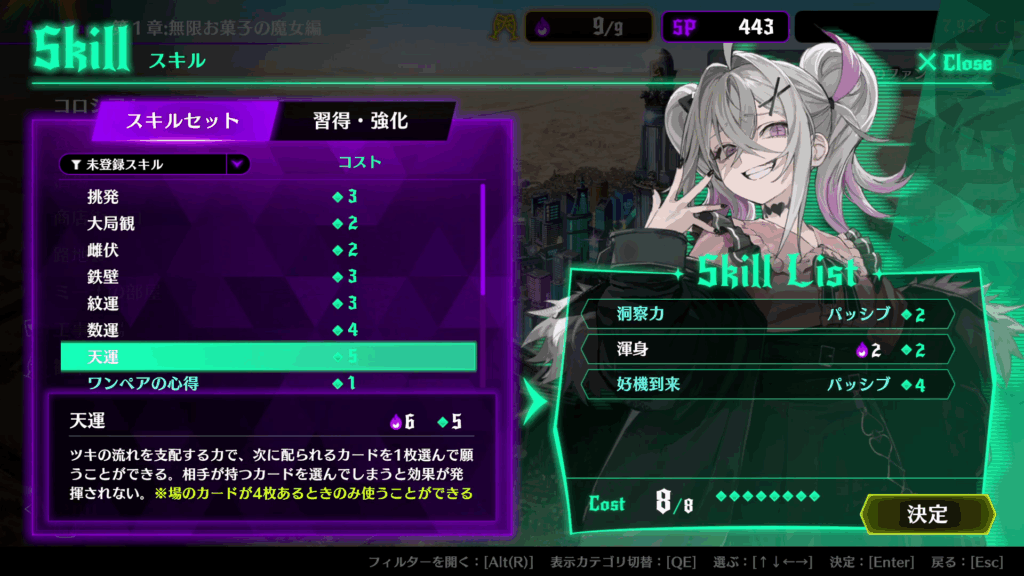 これらのスキルは物語を進めて「心得」というアイテムを購入することで習得でき、戦略の幅が広がっていきます。