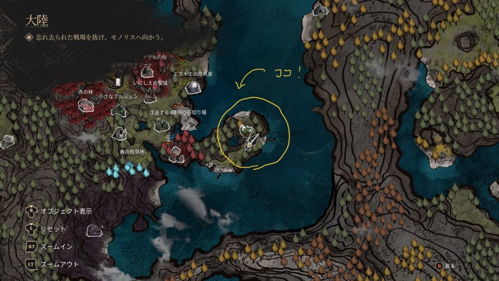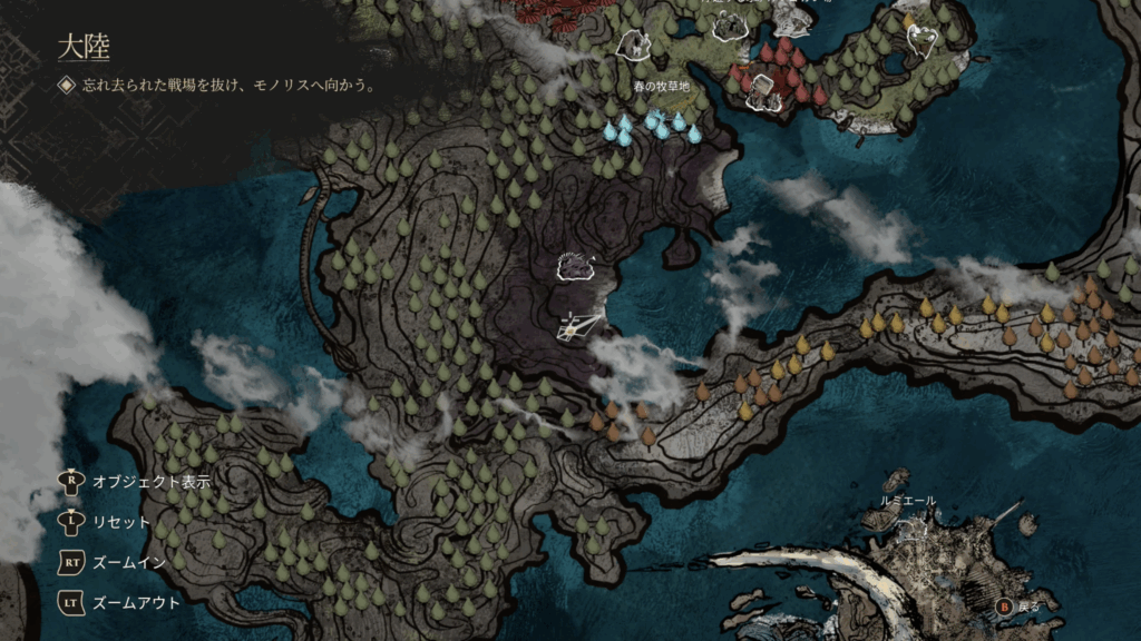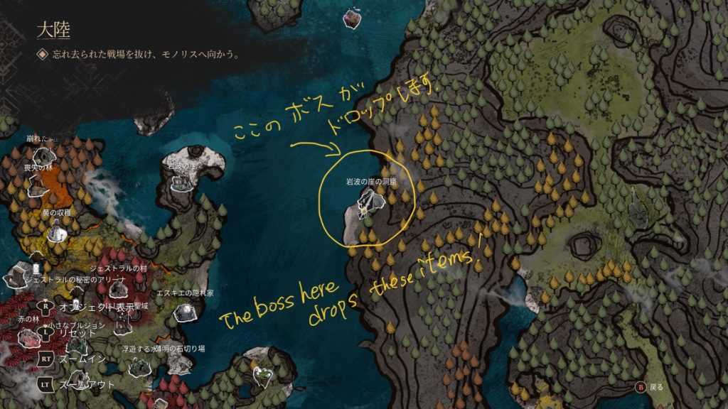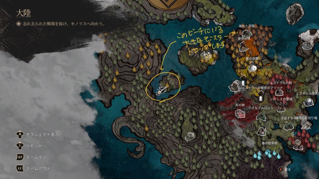 ACT後に海を渡れるようになり、一気に探索範囲が広がり、ゲットできる武器やアイテム・ピクトスがかなり豊富に存在します。