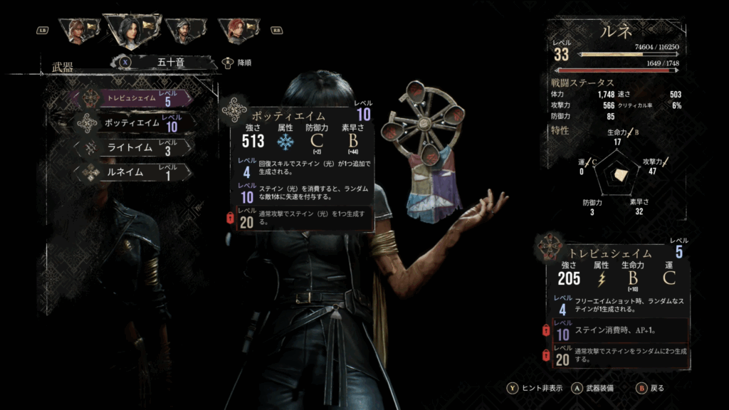 「ポッティエイム」はルネの武器で、非常に高い攻撃力と高頻度で狙えるバフを当てることが可能な素晴らしい武器です