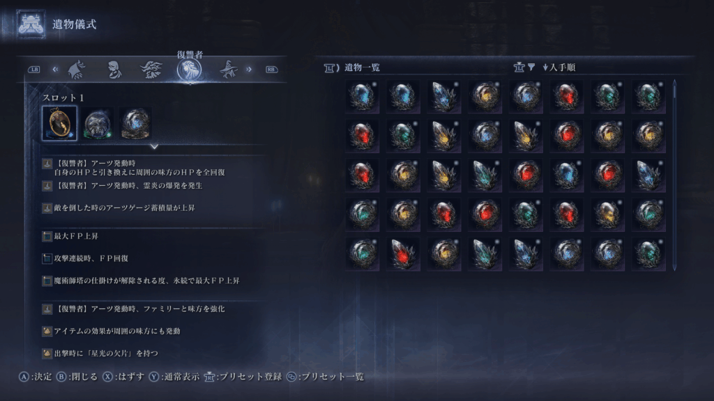 この遺物は非常に重要で祈祷のリソースになるので、これは固定で良いと思います