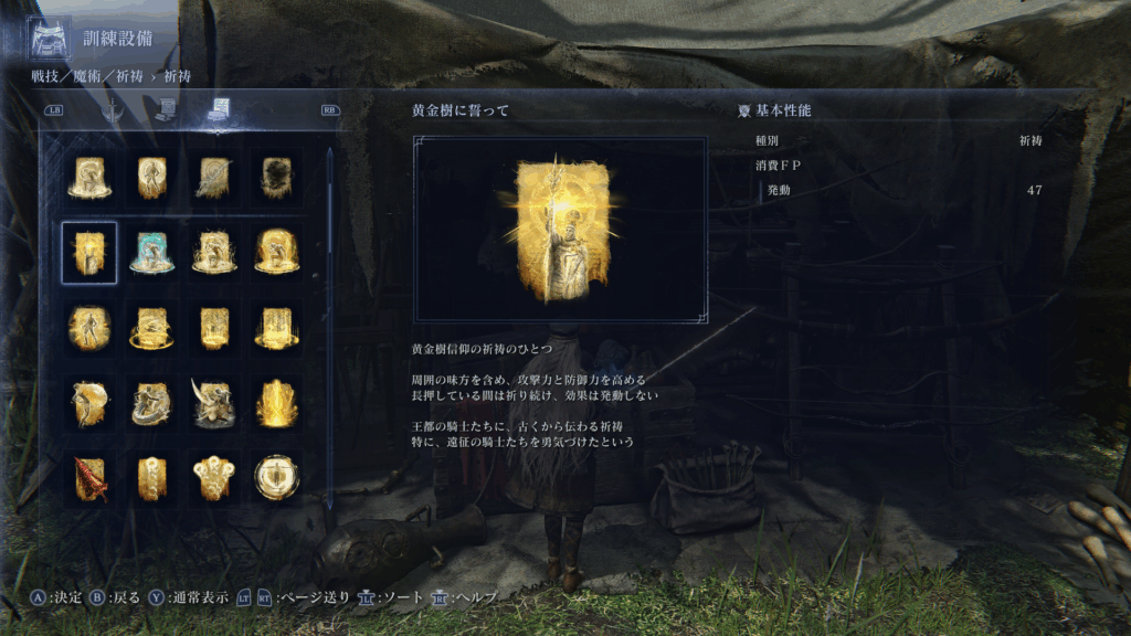 - 「黄金樹に誓って」詠唱(長時間バフで戦闘準備完了)