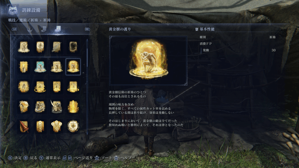 | 黄金樹の護り | – | 属性カット率上昇 | 高属性ダメージ対策 |