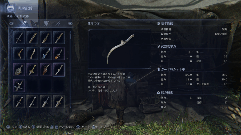 | 使命の刃 | 信仰(B)、技量(B) | 遠距離投射可能 | 安全な遠距離攻撃 |